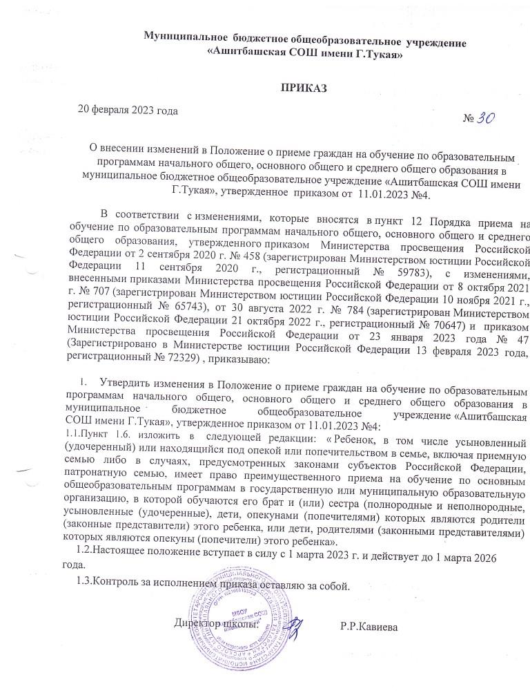 - Положение о Порядке приема граждан на обучение по образовательным программам начального общего, основного общего и среднего общего образования