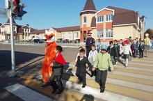 В рамках проведения профилактического мероприятия «Внимание – дети!» члены отряда ЮИД и волонтёры МБОУ «Арская средняя общеобразовательная школа №1 им.В.Ф.Ежкова с УИОП совместно с УГИБДД и ГБУ «БДД» по Арскому району провели акцию «Шагающий автобус» Цель акции : развивать умение первоклассников ориентироваться в дорожной обстановке и понимать значение дорожных знаков, закрепить правила поведения на проезжей части; популяризировать среди детской аудитории светоотражающие элементы; воспитывать в детях ответственность дисциплинированность, культуру поведения на дорогах. Новизна и актуальность мероприятия в том, что в процессе подобной экскурсии дети непосредственно изнутри наблюдают организацию дорожного движения, ощущают себя не объектом воздействия взрослого, а непосредственными и полноправными участниками дорожного движения. В пути следования детей инспектор Муллагалиев Ф.И. и ЮИДовцы с волонтёрами рассказывают детям правила поведения пешеходов, объясняют предназначение дорожных знаков и разметки. Участники акции шли по тротуару, мимо остановочных площадок общественного транспорта, несколько раз пересекали проезжую часть по разным пешеходным переходам, по перекресткам, закрепляя навыки безопасного движения по улично-дорожной сети города. В конце маршрута провели игру, которая позволила проверить уровень адаптации ребенка к безопасному поведению на дорогах. Весь путь первоклассников сопровождала сказочная героиня- Елизавета Патрекеевна, которая напоминала детям о правилах перехода улицы. Начальник ГБУ «БДД» Мухаметзянова Э.Г. подарила первоклассникам световозвращающие элементы и ещё раз напомнила о важности соблюдения ПДД.