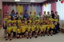 Дошкольники с удовольствием играли в музыкальную физкультминутку «Светофорик». В конце выступления ЮИДовцы и дошкольники спели песню на тему дорожной безопасности. Всем участникам творческого урока Мухаметзянова Э.Г. вручила световозвращающие элементы и подарки.