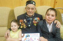 «Дети пишут о войне» под таким названием в 3 А классе была проведена проектная работа. Ученики собирали материалы о войне, писали сочинения о своих прадедушек, о которых только слышали из уст своих бабушек и родителей. Но Закирзянову Азамату и Гараеву Тахиру посчастливилось застать своего прадедушку. Закирзянов Мубаракзян Закирзянович прошёл всю войну. Ему сейчас 92 года. Своим правнукам он сказал: «Эту войну мы выиграли, и быть по-другому не могло. Ведь наш народ не хотел этой крови, не жаждал войны, не стремился убивать. Мы защищали свою Родину, своих близких людей, свои дома и зелёные леса, свои тёплые реки. Именно поэтому мы победили: у нас за плечом стояла любовь, а у фашистского солдата слепая ненависть. И Величие той войны заключается в том, что советский человек боролся за жизнь тогда, как другие хотели невинных смертей». Азамат посвятил своему прадедушке следующие стихи: