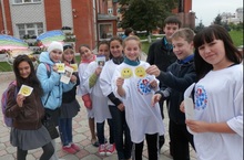 В рамках республиканского месячника «Жизнь без наркотиков» 19 сентября 2013 года участниками антинаркотического проекта «SaМоSтоятельные дети» в АСОШ №1 проведена акция «Поделись улыбкой». Именно его изображение ребята использовали в рекламных буклетах и листовках. Разделившись на несколько мобильных групп, волонтеры в людных местах поселка призывали присоединиться к здоровому образу жизни, раздавали антинаркотические буклеты, предлагали всем желающим поделиться своей улыбкой, нарисовав на асфальте веселую улыбку. Всего в ходе акции было задействованы 12 волонтеров, общий охват акции составил более ста человек.