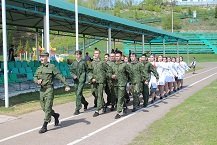 11 мая на стадионе г. Арска состоялся традиционный праздник, посвященный дню рождения Героя Советского Союза Валентина Федоровича Ежкова, чье имя носит школа. Праздник начался с митинга, на который был приглашен участник боевых действий в Афганистане Замалиев Р.Р. Затем состоялся смотр строя и песни. Ребята продемонстрировали выступление по строевой подготовке, которое оценивалось по следующим показателям: внешний вид, дисциплина строя, четкость и правильность выполнения команд, рапорт командира, качество прохождения в строю и исполнения песни. Единая форма, красивые знаки отличия, выправка, исполнение команд – всё радовало глаз. Для первоклассников это было серьезным испытанием, потому что в таком соревновании они принимали участие впервые. Но ребята очень старались! Смотр строя и песни -это не только соревнование, но еще и показатель сплоченности и слаженности коллектива. Завершился праздник спортивными состязаниями, в которых приняли участие 5-11 классы. Учащиеся начальных классов вспомнили народные игры.
