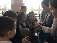 19 нчы февраль көнне укучылар үзидәрәсенә һәм дружина советына йөрүче укучылар 3 нче”А”,3 нче “Б”,3 нче “В” сыйныф укучылары белән” Солдат сандыгында ниләр бар?” исемле әңгәмә уздырдылар. Алар балаларга сугыш кырында каска, кружка, кашык, фляга, котелок, солдат каешының ничек кулланылуы турында сөйләделәр. -