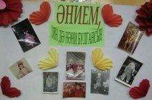 Әниләнең фотоларын урнаштырып "Әнием, син дә нәни булгансың!" исемле стенд ясап куйдык. Балалар кызыксынып үз әниләрен табарга тырыштылар.