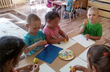 Сегодня дети старшей группы отправились в гости к ежику. Дети вспомнили о том где живет ежик,чем питается. И чтобы ему не было грустно дети с помощью аппликации сделали ему новых друзей.