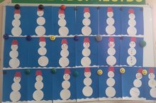 Все дети любят лепить снеговиков. Но когда на улице холодно и нет возможности слепить, снеговиков можно склеить. Вот такие замечательные снеговики получились у детей младшей группы.