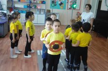 Бүген икенче кечкенәләр төркеменә йөрүче балалар физик тәрбия шөгылен саф һавада үткәрделәр. Урамда көн кояшлы, матур. Саф һавада бик күңелле булды.