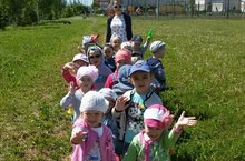 Дети средней группы № 1 выходили на экскурсию, с целью расширения представления о состоянии растений летом. Воспитывать интерес к самостоятельным наблюдениям, обратить внимание на красоту летнего пейзажа, воспитать эмоциональную отзывчивость. Дети играли в подвижные, пальчиковые игры, наблюдали за деревьями, кустами, насекомыми и растениями.