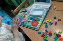 Сегодня на логопедических занятиях дети играли в игру. «Веселые буквы и слова» - это увлекательная обучающая книга-игра, по которой дети учили алфавит, учились читать, а также узнали много веселых историй о животных и растениях, совершая занимательное путешествие по миру букв и слов.