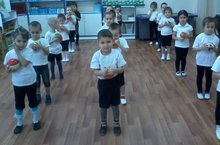 Уртанчылар төркемендәге балалар физик тәрбия шөгелендә туплар белән төрле күнегүләр ясыйлар.Туплар, кыршау белән яратып, зур теләк белән уйныйлар. Кече яшьтән физик күнегүләрнең әһәмиятен күреп үсәләр. -