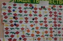 Уртанчылар төркемендәге балалар пластилиннан пирамидка әвәләделәр.Арча педколледжы студентлары балалар белән шөгыль үткәрделәр. Балалар төсләрне кабатладылар, ахырдан әвәләгән пирамидкаларыннан күргәзмә оештырдылар.