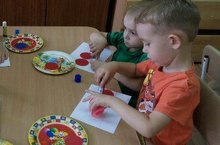 Дети подготовительной группы выполнили композицию "Ваза с фруктами, ветками, и цветами." Сначала дети рассказали об осени, о сборе уражая. В конце занятия они остались очень довольны своими работами.