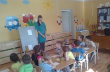 В День открытых дверей дети второй младшей группы побывали на "цирковом представлении". В цирке они помогли дрессированной собачке посчитать кружочки ("один", "много"), а клоунам (большому и маленькому) подбирали игрушки, музыкальные инструменты, одежду и обувь. В заключении клоуны поиграли с детьми в игру "Где звенит погремушка". (впереди, сзади, слева, справа). Вместе с малышами цирк посетили студенты АПК и родители.