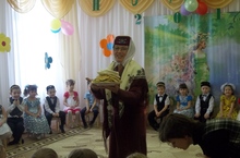 Сегодня в нашем садике прошел праздник "Науруз". Ведущим праздника была воспитатель по обучению татарскому языку Камалиева Г.Р. Гостьями праздника были бабушки, мамы, которых угостили оладьями
