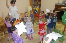 В 1 младшей группе прошло физкультурное развлечение «Мы растем здоровыми». Дети, сев на волшебный поезд, оправились в путешествие на веселую полянку через болото, ручеек. Проходя различные испытания (перепрыгнуть через ручеек, добросить шишки в озеро, пройти по узенькой дорожке), все дети благополучно дошли до полянки. На полянке их встретил зайчик, вместе с которым они играли, собирали грибы, цветы. В конце развлечения дети в приподнятом настроении отправились домой.
