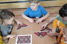 В средний группе сегодня прошла башкирская дидактическая игра "Собери ковёр". Цель: формировать умения детей собирать и подбирать из частей недостающий подходящий орнамент по цветут величине. Задачи: Приобщать детей к искусству башкирского народа./Уртанчылар төркемендә Башкорт дидактик уены "ковер жыю". Максат:Балаларда житешмәгән башкорт бизәк өлешләрен табарга өйрәтү. Бурычлар: Башкорт халкының мәдәни сәнгате белән таныштыру.