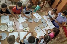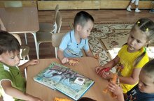 Бүген өлкән төркем балалары кояшның нинди булуын белделәр (күңелле, язгы, ягымлы, эссе, кызыл); ата-бабаларыбызның нинди мәзәкләр уйлап табулары, аны мактап, җырлар җырладылар. Аннары традицион булмаган рәсем ясау техникасы ярдәмендә кояш нурларын сурәтләргә, аның кәефен җиткерергә өйрәнделәр.