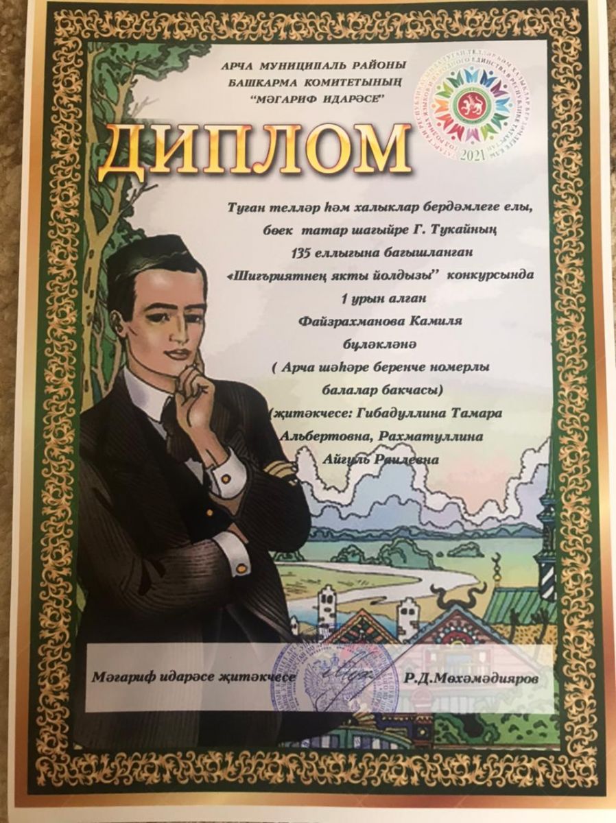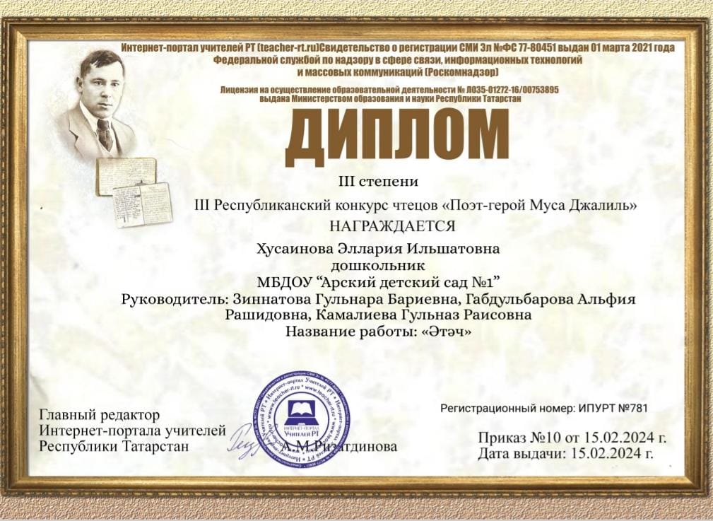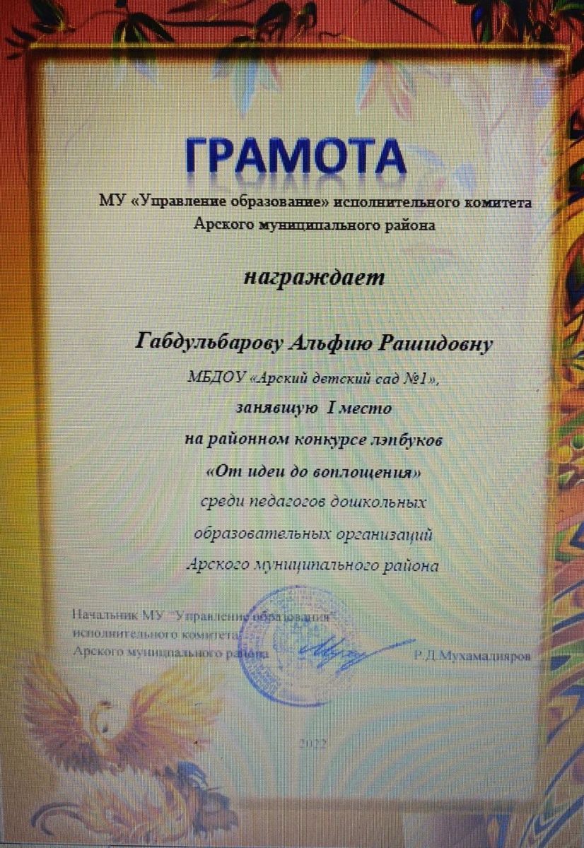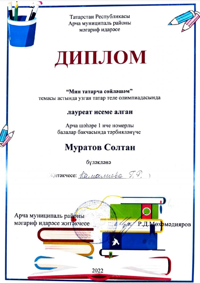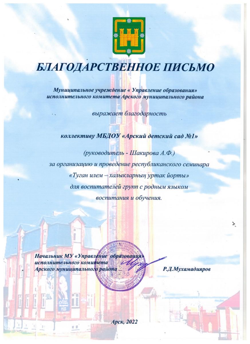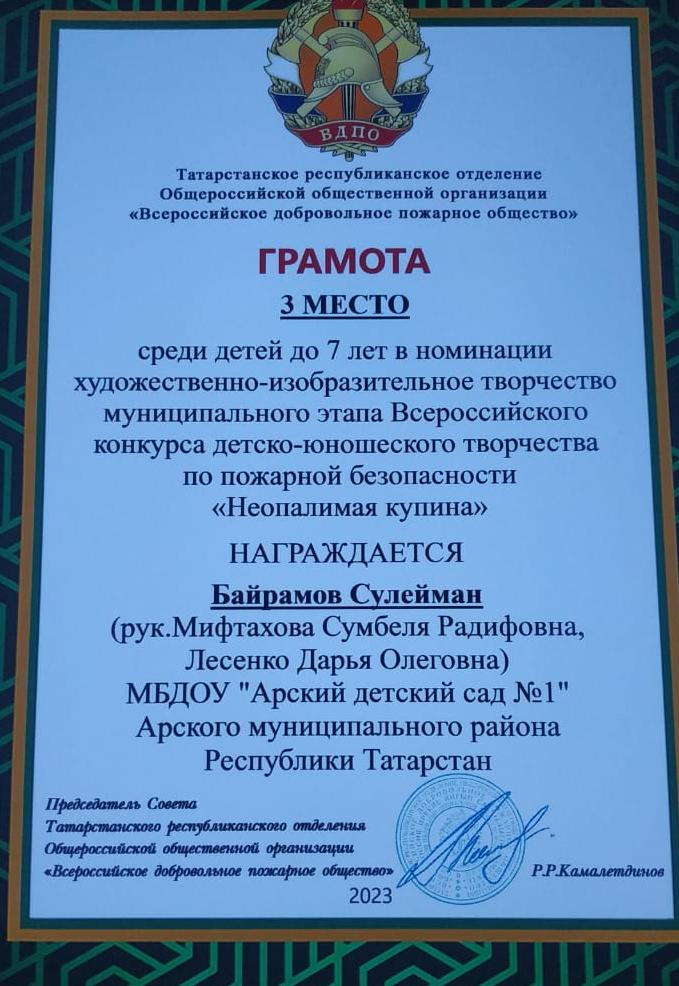 Конкурсы /Джалиловские чтения 2019 001.jpg /Кукла в национальном костюме, 2019 001.jpg Милли почмак,2019 001.jpg Мастер -класс ДОУ,2019 001.jpg,/Диплом 3 степени Зима 2019-2020 Снежные узоры 001.jpg, /диплом Зима 2019-2020 001.jpg,/ Диплом Новогодний калейдоскоп 2019-2020 001.jpg грамота за проведение регионального семинара 001 январь 2020.jpg Гран -при Гаилэ фестивале,2020.jpg, /Диплом за организацию районного шашечного турнира 001(2).jpg ДИПЛОМ 2 место по ПДД 001.jpg Диплом за 1 место по сдаче норм ГТО 001.jpg, Подарок для Елочки, 2019.png, Диплом Созвездие 2020 001.jpg, "Доутесса" Ахунова А.А., 2020.jpg, "Призвание" Габдульбарова А.Р.2020.jpg, "Школа будущего" Тухфатуллина Э.Р. 2020.jpg, Лучший цветочный костюм-2020.jpg, "Воспитатель года - 2020" Бахтиярова И.И.jpg, Тонкий лед Лесенко.jpeg, Благодарственное письмо Лесенко.jpeg, Благодарственное письмо МСЧ Лесенко.jpeg. Благодарственное письмо УГЗ Арского муниц_района Лесенко.jpeg. Джалиловские чтения Валиева Аделя, 2020.jpeg. Нэни Сомбля Нуретдинова Аделина, 2020.jpeg, "Школа будущего" Лесенко, 2020.jpeg, "Метод.разработки Бахтиярова И.И."pdf, "Дартс", 1 место Бакиева Э.И., 2020.jpg, "Буду бдительным на льду и на воде", Байрамов С., 2020.jpg, "Теннис" Ахунова А.А., 2020.jpg, Моя любимая мама, Хакимзянова И_,2020.jpg, Благодарность за лучший рисунок Шагеев Р,, 2020.jpg, Благодарность за лучший рисунок Сигагатуллин Р_, 2020.jpg, Благодарность за лучший рисунок Ахметханов, 2020(1).jpg, Благодарность за лучший рисунок Ахунов И_, 2020.jpg, Благодарность за лучший рисунок Ефимова, 2020.jpg, Благодарность за лучший рисунок Зарипов А_, 2020.jpg, Милли почмак 2020.jpg, Буду бдительным на льду Мингазова 2020.jpg, Сердце отдаю детям, Абдуллина Э_Х_, 2020.jpg, Сдай макулатуру - спасибо дерево, 2020.jpg, Инновационный матер класс, Габдульбарова А_Р, 2020.jpg, Советы педагогического мастерства, Сагитова Г_Ф_, 2020.jpg, Школа будущего, Сагитова Г_Ф_, 2020.jpg, Благодарственное Хисамутдинова Г_А_,2020.jpg, Грамота Хисамутдинова Г_А_2020.jpg, Голосок-2020, Нуретдинова Аделина.jpg, Шашки Ибрагимова Л_Я_2020.jpg, Новогоднее мероприятие 2020.jpeg, Экология - детский взгляд - Хусаинов И.jpg, Воспитатель года 2021 - Габдульбарова А.Р.jpg, Зимние фантазии Файзуллина Ясмина 2021.pdf, Татар сузе Абдуллина Зиля, 2021.jpg, Туган те Бакиевы.jpg, Арча йолдызлары 2021, Валиева А.jpeg, Грамота МУ, Бахтиярова И.И.2021.jpg, Герои А_Барто, Сафина З_2021.jpeg, Эти белэн бергэ, Миннебаевы, 2021.jpg, Лучший конспект Ахунова А_А,, 2021.jpeg, Ибрагимова Л_Я за участие в профсоюзной работе.jpeg, Татар кызчыгы 2021 Валиева А..jpg, Татар малае 2021 Багаутдинов И.jpg, Конкурс лэтбуков 2021.jpg, Конкурс лэтбуков "В мире животных" 2021.jpg, Евдокимов Р. Беби скиллс Арск.jpg, В созвездии А_С Пушкина и Г_Тукая, Файзрахманова К.jpg, Благодарность, Беби скилс Сагитова Г_Ф.jpg, Диплом 1 место Евдокимов Р, Беби скил.jpg, Легкая атлетика 2021, 3 место.jpg, Лучший скворечник 2021 Насыбуллин И.jpg, Ин милли тэрбияче 2021 Гильмутдинова А_А.jpg, Лучший скворечник-2021, Бариева А.jpg, Шигъриятнен якты йолдызы, Мустафин И_, 2021.jpg, Шигъриятнен якты йолдызы, Файзрахманова К_, 2021.jpg, Тукай в наших сердцах, Зарипова И, 2021.pdf, Тукай яши безнен кунелдэ, коллектив, 2021.jpeg, БДД, Ахунова А_А, 2021.jpg, Нэни Сомбелэ-2021 г. Котдусова Сафия.jpg, "Развивающая образовательная среда", Бахтиярова Илюса Ильсуровна(1).jpg, Джалильские чтения Нуретдинова А, 2021.jpg, Джалильские чтения 1 место, 2021.jpg, "ГИБДД конкурс сценариев" Мифтахова, Лесенко, 2021.jpg, ГИБДД конкурс сценариев Камалиева Г., 2021.jpg, Воспитатель года 2021 Лесенко.jpg, Ин яхшы мастер-класс Ахмадуллина 2021.jpg, Экологический сценарий, 2021.jpg, Джалиловские чтен