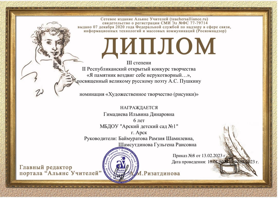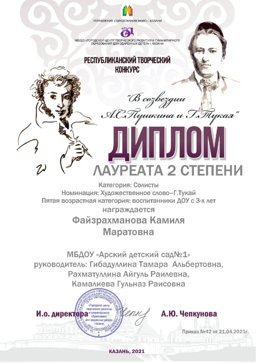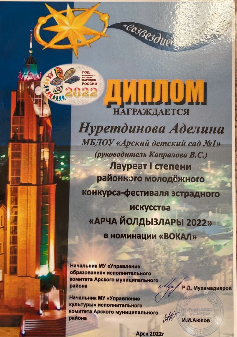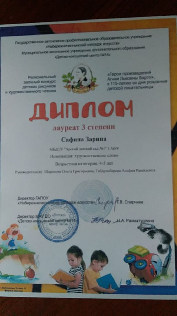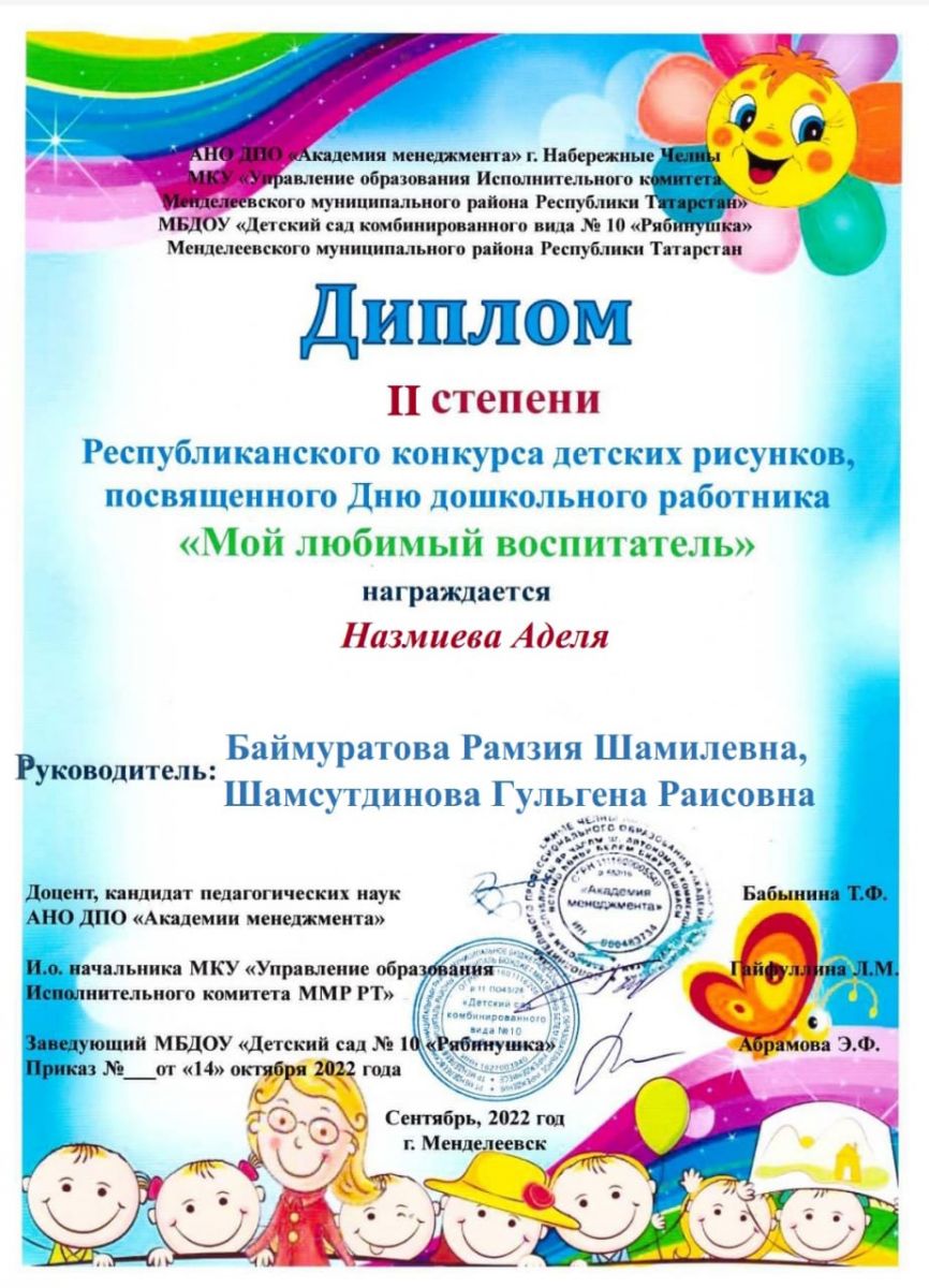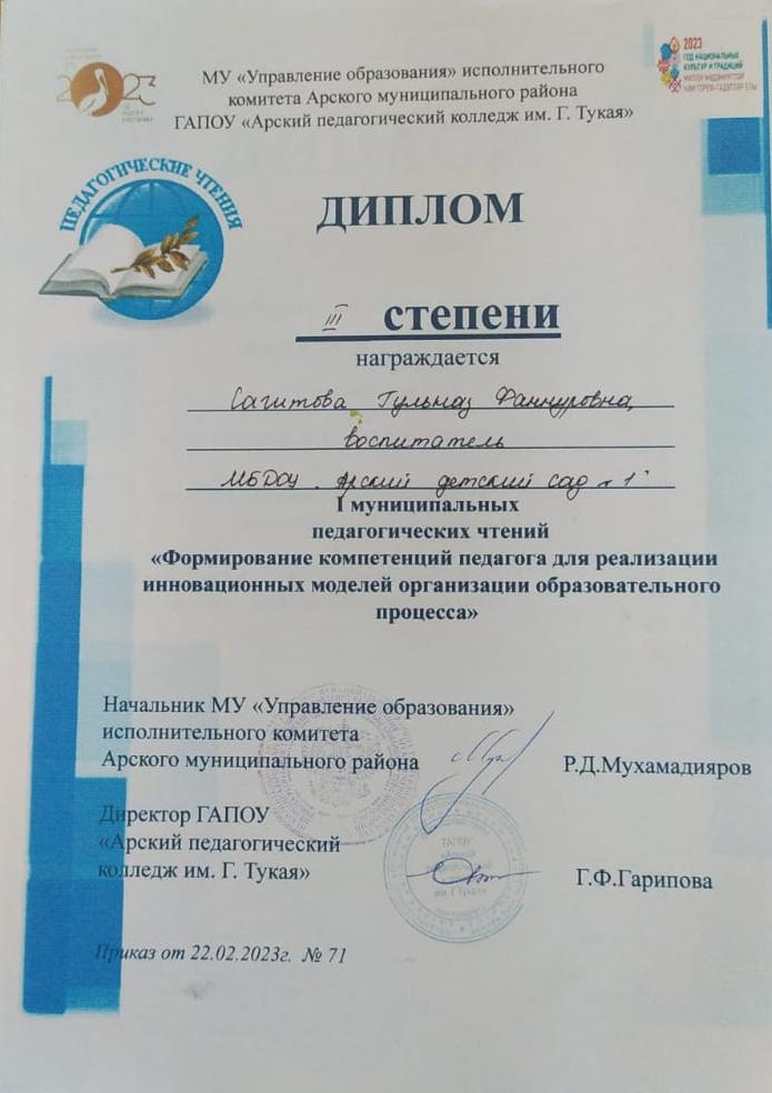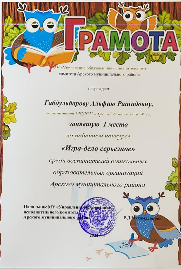 Конкурсы /Джалиловские чтения 2019 001.jpg /Кукла в национальном костюме, 2019 001.jpg Милли почмак,2019 001.jpg Мастер -класс ДОУ,2019 001.jpg,/Диплом 3 степени Зима 2019-2020 Снежные узоры 001.jpg, /диплом Зима 2019-2020 001.jpg,/ Диплом Новогодний калейдоскоп 2019-2020 001.jpg грамота за проведение регионального семинара 001 январь 2020.jpg Гран -при Гаилэ фестивале,2020.jpg, /Диплом за организацию районного шашечного турнира 001(2).jpg ДИПЛОМ 2 место по ПДД 001.jpg Диплом за 1 место по сдаче норм ГТО 001.jpg, Подарок для Елочки, 2019.png, Диплом Созвездие 2020 001.jpg, "Доутесса" Ахунова А.А., 2020.jpg, "Призвание" Габдульбарова А.Р.2020.jpg, "Школа будущего" Тухфатуллина Э.Р. 2020.jpg, Лучший цветочный костюм-2020.jpg, "Воспитатель года - 2020" Бахтиярова И.И.jpg, Тонкий лед Лесенко.jpeg, Благодарственное письмо Лесенко.jpeg, Благодарственное письмо МСЧ Лесенко.jpeg. Благодарственное письмо УГЗ Арского муниц_района Лесенко.jpeg. Джалиловские чтения Валиева Аделя, 2020.jpeg. Нэни Сомбля Нуретдинова Аделина, 2020.jpeg, "Школа будущего" Лесенко, 2020.jpeg, "Метод.разработки Бахтиярова И.И."pdf, "Дартс", 1 место Бакиева Э.И., 2020.jpg, "Буду бдительным на льду и на воде", Байрамов С., 2020.jpg, "Теннис" Ахунова А.А., 2020.jpg, Моя любимая мама, Хакимзянова И_,2020.jpg, Благодарность за лучший рисунок Шагеев Р,, 2020.jpg, Благодарность за лучший рисунок Сигагатуллин Р_, 2020.jpg, Благодарность за лучший рисунок Ахметханов, 2020(1).jpg, Благодарность за лучший рисунок Ахунов И_, 2020.jpg, Благодарность за лучший рисунок Ефимова, 2020.jpg, Благодарность за лучший рисунок Зарипов А_, 2020.jpg, Милли почмак 2020.jpg, Буду бдительным на льду Мингазова 2020.jpg, Сердце отдаю детям, Абдуллина Э_Х_, 2020.jpg, Сдай макулатуру - спасибо дерево, 2020.jpg, Инновационный матер класс, Габдульбарова А_Р, 2020.jpg, Советы педагогического мастерства, Сагитова Г_Ф_, 2020.jpg, Школа будущего, Сагитова Г_Ф_, 2020.jpg, Благодарственное Хисамутдинова Г_А_,2020.jpg, Грамота Хисамутдинова Г_А_2020.jpg, Голосок-2020, Нуретдинова Аделина.jpg, Шашки Ибрагимова Л_Я_2020.jpg, Новогоднее мероприятие 2020.jpeg, Экология - детский взгляд - Хусаинов И.jpg, Воспитатель года 2021 - Габдульбарова А.Р.jpg, Зимние фантазии Файзуллина Ясмина 2021.pdf, Татар сузе Абдуллина Зиля, 2021.jpg, Туган те Бакиевы.jpg, Арча йолдызлары 2021, Валиева А.jpeg, Грамота МУ, Бахтиярова И.И.2021.jpg, Герои А_Барто, Сафина З_2021.jpeg, Эти белэн бергэ, Миннебаевы, 2021.jpg, Лучший конспект Ахунова А_А,, 2021.jpeg, Ибрагимова Л_Я за участие в профсоюзной работе.jpeg, Татар кызчыгы 2021 Валиева А..jpg, Татар малае 2021 Багаутдинов И.jpg, Конкурс лэтбуков 2021.jpg, Конкурс лэтбуков "В мире животных" 2021.jpg, Евдокимов Р. Беби скиллс Арск.jpg, В созвездии А_С Пушкина и Г_Тукая, Файзрахманова К.jpg, Благодарность, Беби скилс Сагитова Г_Ф.jpg, Диплом 1 место Евдокимов Р, Беби скил.jpg, Легкая атлетика 2021, 3 место.jpg, Лучший скворечник 2021 Насыбуллин И.jpg, Ин милли тэрбияче 2021 Гильмутдинова А_А.jpg, Лучший скворечник-2021, Бариева А.jpg, Шигъриятнен якты йолдызы, Мустафин И_, 2021.jpg, Шигъриятнен якты йолдызы, Файзрахманова К_, 2021.jpg, Тукай в наших сердцах, Зарипова И, 2021.pdf, Тукай яши безнен кунелдэ, коллектив, 2021.jpeg, БДД, Ахунова А_А, 2021.jpg, Нэни Сомбелэ-2021 г. Котдусова Сафия.jpg, "Развивающая образовательная среда", Бахтиярова Илюса Ильсуровна(1).jpg, Джалильские чтения Нуретдинова А, 2021.jpg, Джалильские чтения 1 место, 2021.jpg, "ГИБДД конкурс сценариев" Мифтахова, Лесенко, 2021.jpg, ГИБДД конкурс сценариев Камалиева Г., 2021.jpg, Воспитатель года 2021 Лесенко.jpg, Ин яхшы мастер-класс Ахмадуллина 2021.jpg, Экологический сценарий, 2021.jpg, Джалиловские чтен