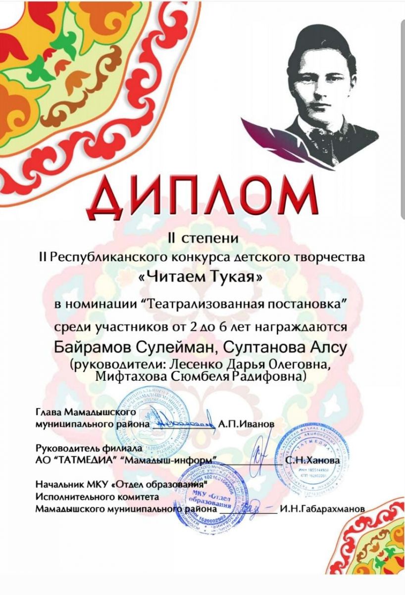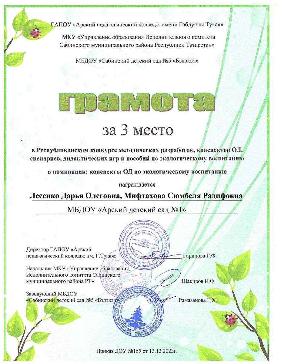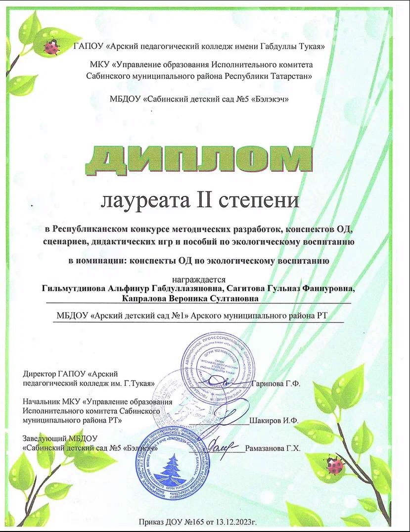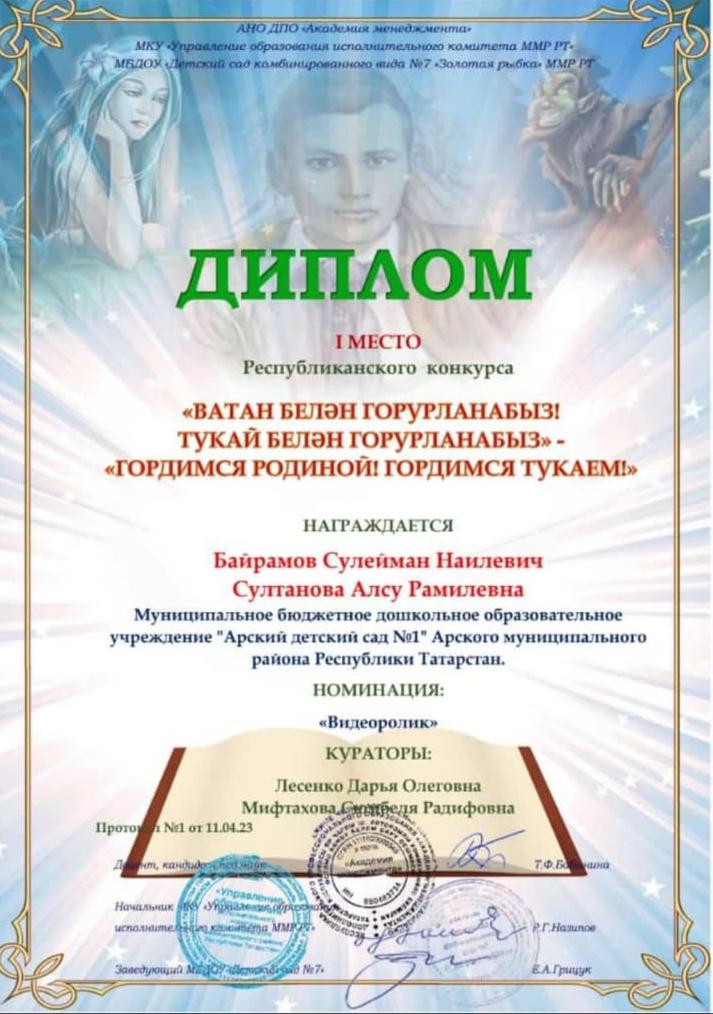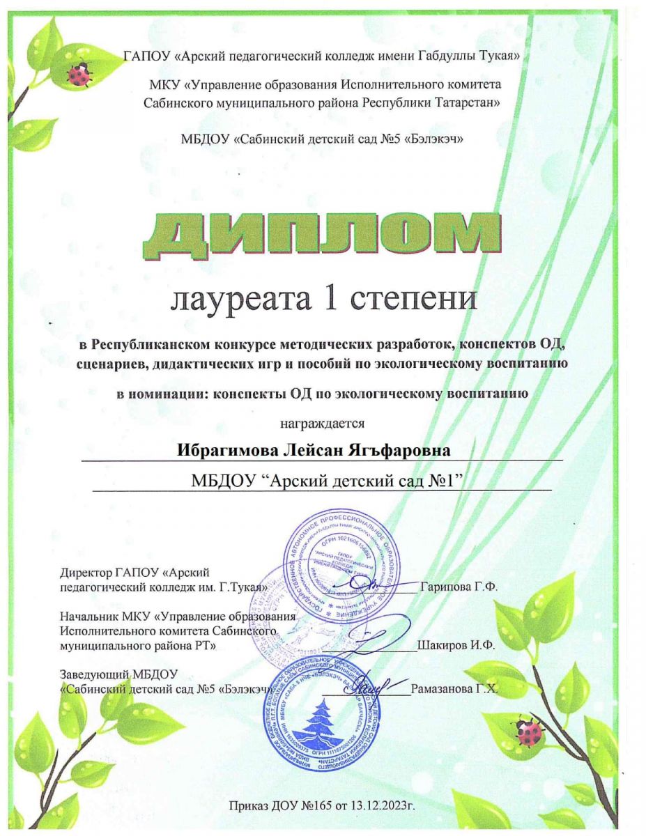 2023-2024 у.г. Дидактическая игра Зиннатова, Габдульбарова.jpg, Лэпбук Камалиева, Хакимова.jpg, Новогодняя феерия 23.jpg. В гостях у Светофорика Ибрагимова Л_Я, 24.jpg,Будь заметным на дороге, Гульмутдинова А.jpg, Настольная игра по БДД, Баймуратова Р_Ш.jpg, Лучший наставник, Баймуратова Р_Ш.pdf, К-с чтецов Поэт-герой М_Джалиль, Хусаинова Э, 2024.jpg, грамота 1 степени Габделбариева Зарина.pdf, БП Баймуратовой Рамзия Шамилевне.pdf, Будь заметным на дороге, Ахметханов И.pdf, ГТО, 2023.jpg, Комеш тавыш, Сайфуллин Р, 2023.jpg, Лесенко Дарья.jpeg,Сомбелэ чибэре Сафина Р, 2023.jpg, Я говорю и работаю по-татарски 2023, Лесенко Д_А.jpg, Ансамбль ноябрь 3 ст.pdf, Сафина Ралина Ильназовна.pdf, Лесенко Д.О, Мифтахова С.Р, свидетельство.pdf, Игра-дело серьезное Бахтиярова И_И.jpg