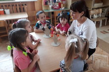 Бүген, 15 мартта, 1 нче уртанчылар төркемендә студентлар эйләнә-тирә мохиттән эшчәнлек күрсәттеләр. Эшчәнлек бүлмә гөлләре турында иде. Аның үсеше, сабаклары, яфраклары турында студент балаларга аңлаешлы, гади итеп аңлата белде. Уенда балалар бик теләп катнаштылар һәм дөрес итеп гөлләрне таный белделәр. Студент куйган масатына иреште. Ә эшчәнлек ахырында балалар гөлне үзләренчә матур рәсем итеп ясадылар.
