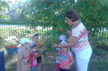 Воспитатель вместе с детьми средней группы на участке обратила внимание на рябину. «Посмотрите, какое перед нами тоненькое деревце. Как оно называется?» Сообща дети пришли к выводу, что рябина – это очень красивое дерево. Познакомились с характерными особенностями рябины, по которым её можно выделить среди других деревьев. Рассмотрели строение деревца: ствол, ветви, листья, ягоды. Во время наблюдения, наряду с образовательными и развивающими задачами, детям прививались и воспитательные задачи.