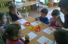 Праздничные салюты детей младшей группы способом нетрадиционного рисования 18.05.2016