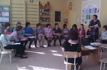 Деятельность по обмену опытом коллег даёт дополнительный импульс и заряд энергии для ещё большего внедрения нового в свою работу. 05.04.2016 В рамках обмена опытом, воспитатель младшей группы Хасанова А.Д. преподнесла образовательную деятельность по развитию речи на тему «К нам пришла весна». Педагог показал хорошее знание методики развития речи. Вызвав интерес к запланированной теме, воспитатель помог детям в игровой форме освоить программные задачи, активизировать мыслительную деятельность и их речевую активность. Хорошо владеет также приёмами привлечения внимания. Провела активизацию словаря на обоих государственных языках (весна – яз, капель – тамчы). Дети данной группы очень активны, хорошо знают и называют первые признаки весны, подбирают определения при описании солнышка. В целом мероприятие прошло плодотворно и интересно не только для детей, но и для коллег Алии Дамировны.