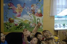 17 октября 2013 года для детей средней группы №1 было организовано яркое и необычное развлечение - Шоу мыльных пузырей. Все дети, без исключения, любят пускать мыльные пузыри, они это делают и дома, и на улице, и в садике, и в любое время года. Наше шоу было необычным потому, что пузыри такого большого количества и таких огромных размеров надувать детям раньше не удавалось никогда. Каких только пузырей здесь не было… Дети купались под дождем из миллионов маленьких пузырьков. Программа шоу вызвала небывалый восторг у наших ребятишек, эмоции переполняли их - удивление, восхищение, радость, овации, счастье читались на детских лицах. Не обошлось на празднике без весёлых и зажигательных танцев.