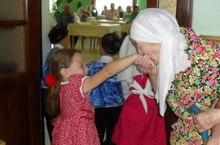 2013нче елның август аенда үткәрелүче ,,Бул шәфкатьле” проекты кысаларында безнең 10нчы номерлы балалар бакчасының зурлар төркеме балалары һәм тәрбиячеләре Гөлфинур Зайнакова, Ирина Газизова искиткеч концерт программасы әзерләп Арча шәһәрендә урнашкан “Картлар һәм инвалидлар йорты”нда кунакта булып, өлкәннәребезне ял иттереп кайттылар. Ахырдан балалар үз куллары белән эшләнгән бүләкләрне өлкәннәребезнең муеннарыннан кочып, битләреннән үбеп тапшырдылар. Әби-бабаларыбыз да балаларны игътибарсыз калдырмады: үз куллары белән эшләнгән блокнот, сувенир – сандыкчыклар бүләк иттеләр. Балалар да бүләккә бик сөенделәр!