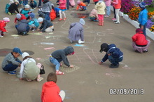 Следующим этапом "Дня Знаний" было рисунки на асфальте. Дети двух групп с большим интересом рисовали на тему: "Мир глазами детей".