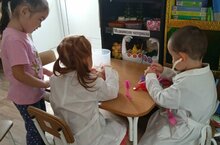 Воспитанники второй младшей группы сегодня ещё раз вспомнили о важности таких профессий, как «врач», «медсестра». Каждый ребёнок принимал активное участие в сюжетно-ролевой игре «Больница». Для начала дети повторили названия медицинских инструментов, правила поведения в больнице. Затем часть детей примерила на себя роли доктора и медсестры, другие дети побывали пациентами. В процессе игры дети менялись ролями. Игровая деятельность доставила большую радость детям, все были увлечены игровым процессом.