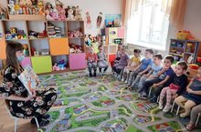 Буген безнен бакчабызда мэртэбэле кунаклар булды.Арча эчке эшлэр булегенен ЮХИДИ хезмэткэрлэре килде. Аларга кечкенэлэр хэм зурлар торкеме балалары бэйрэм курсэтте.Кечкенэдэн балаларда юл йору кагыйдэлэрен ойрэту хэрбер ата- ананын, тэрбиячелэрнен зур бурычы булып тора.Без дэ шуны куздэ тотып, икенче кечкенэлэр торкеме белэн "Кунелле сэяхэт" дигэн исем астында юл йору кагыйдэлэрен ойрэну буенча бэйрэм оештырдык.Бэйрэмдэ балалар узлэренен белемнэрен курсэтте: шигырь сойлэп, паззллар жыеп, кунелле уеннар уйнап коч сынаштылар.Кунакка Карлсон да килгэн иде, балалар Карлсонны узлэре белэн сэяхэткэ алдылар.Юл йору кагыйдэлэрен ойрэттелэр.Бэйрэмне тэмамлап "Ойрэтэлэр бакчаларда" жырын башкардылар.Килгэн кунакларга бэйрэм бик ошады, алар балаларга юл йору кагыйдэлэре дигэн китап белэн яктылык кайтаргычлар булэк иттелэр.Бакча хезмэткэрлэренэ дэ, килгэн кунакларга да, балаларга да бэйрэм бик ошады.Мондый бэйрэмнэр ел да кабатлансын иде дигэн телэктэ калабыз!