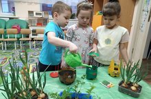 Совсем скоро наступит долгожданная Весна! Будет пригревать солнышко, петь капель, набухать и распускаться листочки, будет просыпаться природа. Вместе с детьми мы решили с детьми уже сейчас готовиться к наступлению Весны и посадить зелень в нашей группе. Дети принесли лук для посадки из дома, вместе мы приготовили грунт начали наш процесс посадки вместе с детьми. Каждый ребенок поучаствовал в этом процессе: накладывали грунт в ящик для посадки, поливали почву перед посадкой, а затем и сажали лук и зелень. Дети почувствовали себя настоящими огородниками, получили эмоциональный восторг от проделанной работы и теперь каждое утро проверяют лучок, посаженный ими.