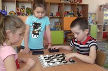 В нашей группе есть мальчик, который уже освоил эту непростую игру. Он более активен в игре и с удовольствием включает в нее других ребят. Увлеченных в эту игру становится все больше. Вот так «чудо - шашки»! -