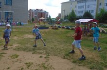 Сегодня состоялся дружеский матч по футболу среди команд старших групп.Футбол — азартная игра с мячом. В играх и действиях с мячом дошкольники совершенствуют навыки большинства основных движений. Вместе с тем игры с мячом — это своеобразная комплексная гимнастика. В ходе игр дети упражняются не только в бросании и ловле мяча, забрасывании его в корзину, ударам по мячу ногой, ведении ногой, ударам по цели и на дальность с места и с разбега, но также и в ходьбе, беге, прыжках. Все эти движения дети выполняют в постоянно изменяющейся обстановке. А это способствует формированию у детей старшего дошкольного возраста умений самостоятельно применять движения в зависимости от условий игры. Так как у них еще слабо развита способность к точным движениям, любые действия с мячом оказывают положительное влияние на развитие этого качества.