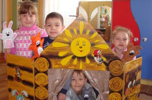 Кукольный театр - это неисчерпаемый источник развития ребенка и познания им мира. Играя с персонажами - рукавичками, ребенок пробует себя в разных ролях, учится выражать мысли, оценивать поступки героев, осваивает правила этикета. Такая игра способствует развитию фантазии, артистических способностей, инициативности, памяти. Кроме того развивает моторику рук и двигательную активность детей. Сегодня дети подготовительной группы №2 с большим удовольствием показали инсценированное представление "Теремок" с персонажами-рукавичками для малышей из второй младшей группы.. -