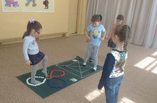 Нетрадиционные подходы к построению и содержанию занятий по физической культуре, позволяют постоянно поддерживать интерес к ним детей, индивидуализировать подход к каждому ребенку, разумно распределять нагрузку, учитывая уровень двигательной активности. Оздоровительный эффект, достигаемый при проведении нетрадиционных форм, тесно связан с положительными эмоциями детей, благотворно влияющими на психику ребенка.Используя развивающие коврики в индивидуальной работе инструктора по физической культуре, происходит не только коррекция плоскостопия у детей, а так же развитие внимания, глазомера, умения различать и запоминать цвета, правильно считать, а так же развивать русскую и татарскую речь. Во время занятий используются картинки – схемы, пиктограммы по УМК, музыка. На таких занятиях дети не замечают, что это занятие по физической культуре, и являются полноправными участниками увлекательного действия. -