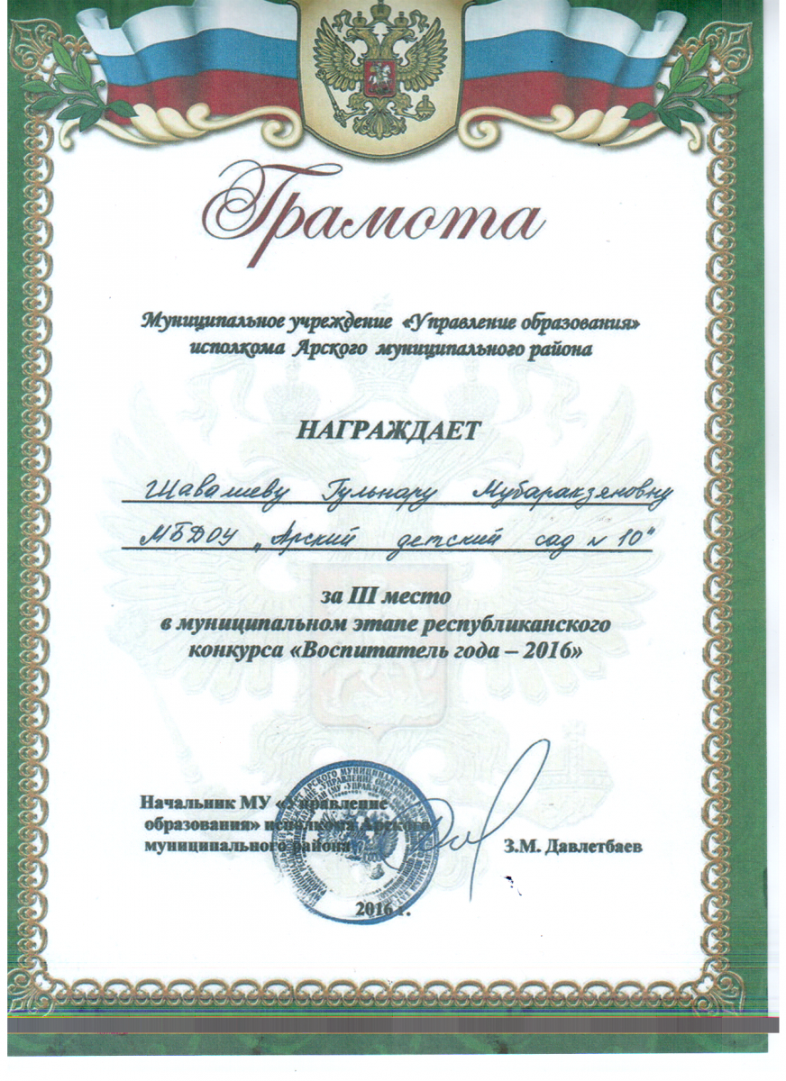 3 место на муниципальном этапе республиканского конкурса Воспитатель года-2016.png