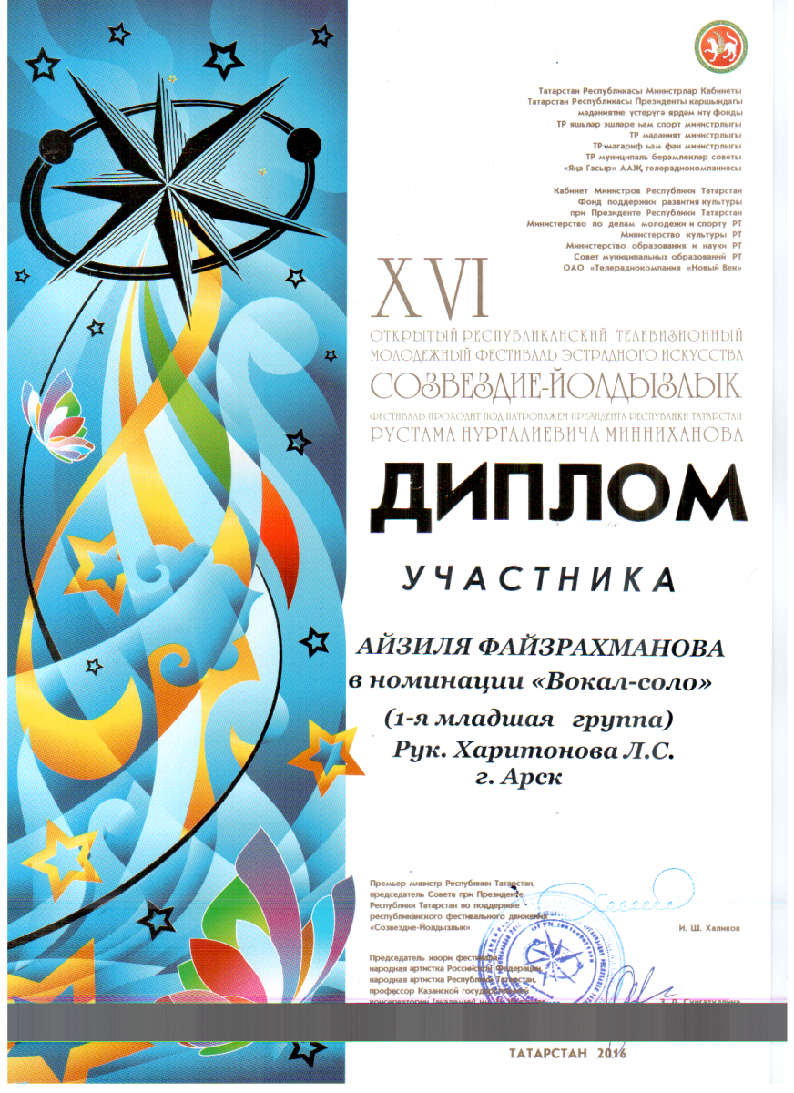 Диплом победителя районного молодёжного фестиваля Созвездие - Йолдызлык 2016.png