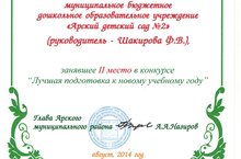 Коллектив детского сада занял 2 место в районном конкурсе "Лучшая подготовка к новому учебному году". Поздравляем!