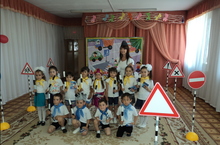Дети средней группы показали родителям и инспектору ГИБДД Сабирову А. , как они изучают правила дорожного движения в детском саду, а потом инспектор и воспитатели Медникова Г. З., Саляхутдинова Г. Х. проверили самих родителей на знание ПДД,