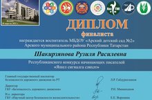 Безнең балалар бакчасының тәрбиячесе Шакирзянова Р. Р. республикакүләм "Яшел сигналга сәяхәт" бәйгесенең финалына чыкты. Ул бәйгедә "Гомәрнең шәһәр буйлап сәяхәте" исемле әкиятен тәкъдим итте. Котлыйбыз!
