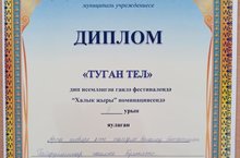 Бүген "Арча 6нчы балалар бакчасы" нда "Туган тел" исемле гаилә фестивале узды. Фестивальдә безнең балалар бакчасында тәрбияләнүче Гайфуллинар үзләренең әби-бабайлары белән чыгыш ясадылар. Алар жюрига "Җырла-җырла дип әйтәсез" татар халык җырын тәкъдим иттеләр.