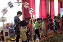 Сегодня в детском саду совместно с сотрудником ГИБДД прошли открытые мероприятия по ПДД. Воспитанники средней группы помогли Лунтику разобраться в правилах дорожного движения, а дети старшей группы показали Светофору, как хорошо они знают дорожные знаки.