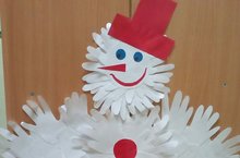 Цель: учить выполнять поделку «Снеговик» из бумаги, применяя нетрадиционную технику выполнения поделки из вырезанных ладошек.Дети дошкольного возраста любят делать поделки для украшения группы. Сделанный средней группой номер 2 снеговик вывешен в группе, дети обращают внимание сами и привлекают внимание родителей. Тем самым способствуют привлечению родителей к оформлению группы поделками, сделанными своими руками. -