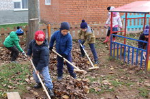 Осень – пора листопада. Поэтому необходимо было убрать опавшие листья на участке. Дети подготовительной группы №1 с удовольствием взялись за дело, как только у них в руках оказались грабли. Все старались, и на участке образовались несколько больших куч собранных листьев.