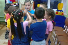 Икенче кечкенәләр төркемендә бармак уеннары белән таныштыру дәвам итә. Уеннар аша дуслык, бер-береңә хөрмәт хисләре тәрбияләнә.
