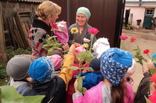 В нашем детском саду прошёл День добра. На протяжении всего дня с детьми проводились разные мероприятия, направленные на воспитание доброты, заботы о ближнем. Дети подготовительной группы №1 побывали в гостях у ветерана педагогического труда - бывшего сотрудника детского сада, подарили цветы, предложили свою помощь. Дети с удовольствием поговорили с Зумарат Рамазановной , рассказали ей о своей жизни в детском саду, расспросили о здоровье и пообещали приходить почаще.