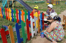 «Наша задача — каждым делом удивить ребёнка», — писал В.А. Сухомлинский. Сделать это совсем несложно: лишь немного фантазии и усилий взрослого, и ребёнок, приходя в детский сад, разглядывает новые предметы, радуется яркости красок, которые его окружают. Несмотря на то, что работа с детьми в образовательных учреждениях не прекращается ни зимой, ни летом, каждый год коллектив детского сада готовится к новому учебному году. Спортивная площадка, групповые участки встречают ребят красочным оборудованием, качалками, песочницами и горками.